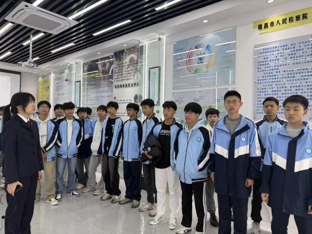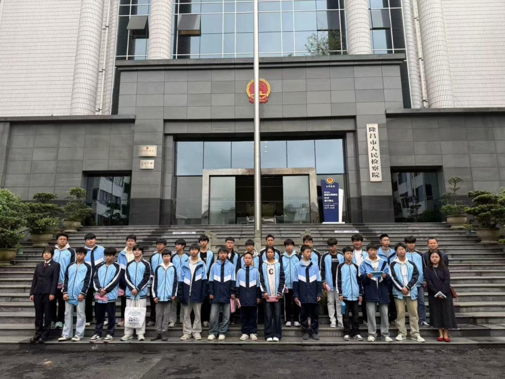 为切实增强青少年法治意识,筑牢未成年人违法犯罪防线,2026年4月8日,隆昌市城关职业中学组织27名学生代表赴隆昌市人民检察院,开展“法治宣传进校园”青少年法治宣教活动。活动以实地参观、案例讲解、互动体验相结合的形式,让学生“零距离”感受法治力量、接受法治熏陶,推动法治理念在青少年心中落地生根。